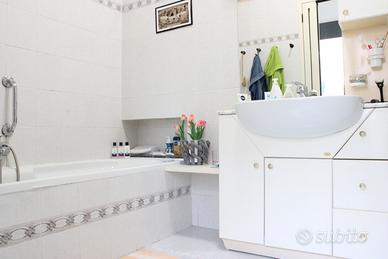 Il bagno principale, dispone di vasca da bagno, mentre il secondo servizio, più compatto ma funzionale, utilizzato anche come zona lavanderia, rende l'abitazione perfetta anche per i nuclei familiari più numerosi.