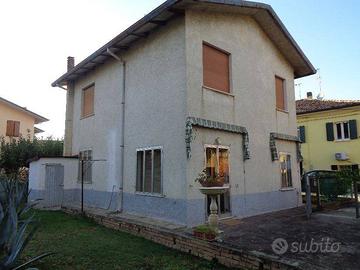 Rif:(123639801) - Casa indipendente immersa nella quiete della campagna ma vicino a tutti i servizi, in zona San Martino dei Mulini a due passi da Santarcangelo di Romagna vicino a Villa Verucchio e a soli 5/6 km da Rimini. La casa è stata ristrutturata nel '74 e volendo potrebbe essere abitabile da subito ma è chiaro che non è più al passo coi tempi e di conseguenza andrebbe ristrutturata. Si estende su 2 livelli con al P. T. ingresso su ampia cucina/sala da pranzo, soggiorno, ampio bagno e sottoscala uso lavanderia; al 1°P. collegato da scala interna troviamo 3 camere matrimoniali, bagno e ripostiglio, sottotetto uso ripostiglio. La casa è circondata da un grande giardino di 1000 mq . sul quale insiste un ampio magazzino di mq . 76 interni, che può essere usato come garage, deposito o trasformabile in altra unità residenziale. Soluzione ideale per famiglia numerosa o per 2 nuclei familiari, ma soprattutto per chi ama la tranquillità senza dover rinunciare alle comodità. Manuela - Classe: G - IPE: 175.00 kWh/mq anno