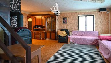 Al primo piano si sviluppa la zona giorno con cucina, sala da pranzo e soggiorno con camino. Completano il piano un bagno e l'accesso al grande balcone. Nella parte posteriore della casa, un corridoio collega i due giardini e conduce al gazebo con tavolo, ideale per trascorrere piacevoli momenti all'aperto. È inoltre presente una spaziosa legnaia.