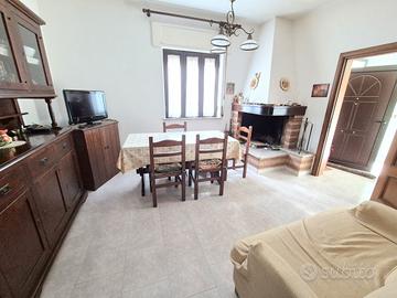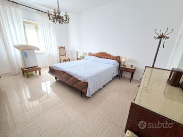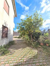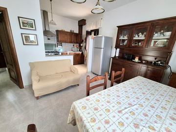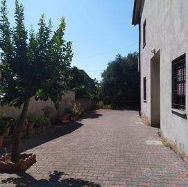 Al piano terra, l'immobile offre un ingresso accogliente, un luminoso soggiorno con angolo cottura e caminetto, due camere da letto, un bagno e un ripostiglio. Esternamente nell'ampio cortile pavimentato con autobloccanti, si hanno due posti auto coperti ed un pozzo dell'acqua, un albero di limoni ed un ulivo e dove si possono parcheggiare altre due auto. Al primo piano, troviamo un disimpegno che conduce a quattro camere, due delle quali vantano un balcone privato dai quali si ha una bella vista panoramica con uno scorcio di mare, insieme a un secondo bagno.