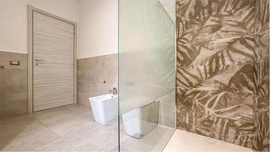 Limmobile, rifinito con materiali dal gusto moderno, si compone internamente di profondo andito centrale sul quale affacciano tutti gli ambienti; sulla destra troviamo una spaziosa e luminosa zona giorno open space adiacente al primo bagno impreziosito da doccia walk in e completo di angolo lavanderia, e sulla sinistra due camere da letto, di cui una matrimoniale ed una doppia, servite da secondo elegante bagno anchesso con doccia walk in.