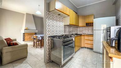 Dallandito, tramite porta finestra, si accede ad uno spazioso cortile interno, in parte piantumato, con accesso a due ulteriori ambienti, una comoda cucina con sala da pranzo e camino, ed un secondo vano adibito a legnaia e impreziosito da forno a legna.