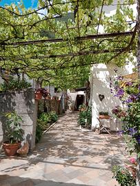 A l'esterno, ampia corte e terrazza piastrellate verso giardino.