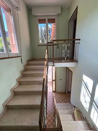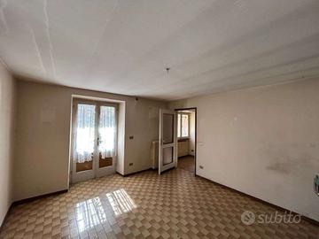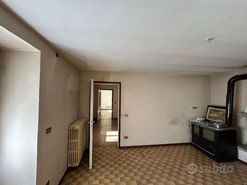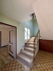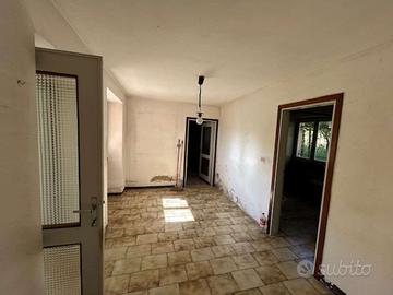 A piano terra è ricavata una autorimessa con finiture alla rustico e quattro vani ad uso cantina, ripostiglio e servizio igienico con ivi installata la caldaia murale funzionante a GPL che alimenta l'impianto di riscaldamento del intero fabbricato, dotato di elementi radianti in ghisa installati in tutti vani. Al primo piano è ricavata l'abitazione composta da ingresso-disbrigo, cucina, soggiorno con balcone, due camera da letto di qui una con balcone e stanza da bagno.