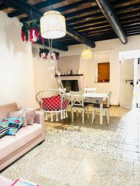 L'appartamento è composto da soggiorno con zona pranzo e camino, cucina abitabile, ripostiglio, due camere da letto e bagno interamente ristrutturato due anni fa (praticamente nuovo). ca80mq