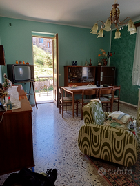 secondo piano: ampio soggiorno con cucina, camera, bagno con doccia, lavanderia, terrazzo panoramico su due lati.