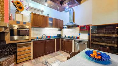 La casa dispone esternamente di un grande loggiato con area barbecue, per pranzi in compagnia, ed internamente di grande living open space con cucina a vista, reso accogliente da un camino a legna ed annesso ad un comodo ripostiglio con zona lavanderia.