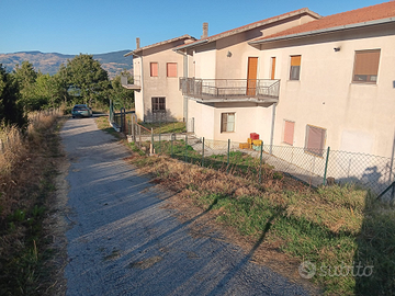 Casa indipendente abbinata su di un lato suddivisa già in due appartamenti al primo piano con ingresso indipendente e garage con cantina al piano terra,corte e terreno agricolo di circa 13000mq recintati.