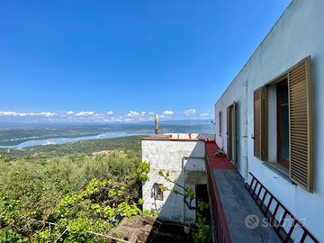 Sorradile: casa indipendente con bellissima vista lago. L'immobile si sviluppa su due livelli con cortile, terrazzo e seminterrato. Al pianto terra troviamo un soggiorno, cucina, bagno e tre ampie camere. Al primo piano troviamo la zona notte con 4 camere ed un ampio disimpegno finestrato, dove volendo si può fare un bagno, e la terrazza panoramica. Al piano seminterrato troviamo tre ampi vani cantina, accessibili dall'ampio cortile, giardino e posto auto.