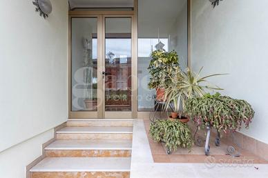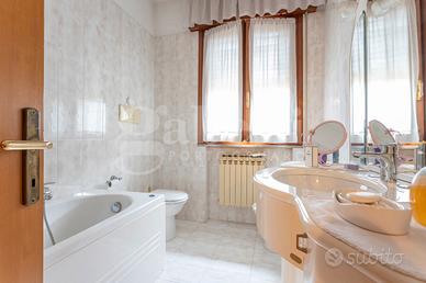 Rif. 64 Proponiamo in vendita una prestigiosa villa singola di generose dimensioni, situata in via Lemene, in una delle zone residenziali più tranquille e apprezzate di Concordia Sagittaria. La posizione rappresenta senza dubbio uno dei principali punti di forza dell'immobile: pur garantendo privacy e serenità, la casa si trova a poche centinaia di metri dai principali servizi utili alla vita quotidiana: nelle immediate vicinanze sono infatti presenti scuole elementari e medie, il palazzetto dello sport, ufficio postale, farmacia e diversi piccoli esercizi commerciali. Inoltre, la pista ciclabile permette di raggiungere il centro storico in pochi minuti in modo sicuro, sia a piedi che in bicicletta. La villa, completamente ristrutturata a partire dalla metà degli anni '90, si sviluppa su due livelli e si distingue per gli ampi spazi, la qualità costruttiva e i materiali di pregio, elementi che conferiscono all'abitazione un carattere elegante e signorile. Il piano primo, destinato alla zona abitativa principale, si apre su un piacevole ingresso che conduce a un ampio soggiorno caratterizzato da doppio volume, suddiviso tra zona pranzo e area relax. L'ambiente è impreziosito da un camino a vista perfettamente funzionante e da un terrazzo che si sviluppa lungo due lati della casa, garantendo grande luminosità e continuità tra interno ed esterno. Sempre sullo stesso livello troviamo una comoda cucina abitabile, un bagno dotato di vasca idromassaggio e la zona notte composta da tre camere da letto: una matrimoniale, una doppia e una terza stanza singola attualmente adibita a studio. Il piano terra accoglie una grande e calda taverna, un ambiente estremamente accogliente e ideale per momenti conviviali con famiglia e amici. Completano il livello una camera aggiuntiva, cantina, dispensa, secondo bagno con doccia, centrale termica utilizzata anche come lavanderia e un ampio garage doppio di circa 32 mq. Particolare attenzione è stata dedicata alle fini
