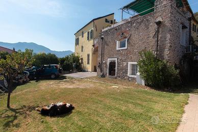 Vendita da privato. Casa in centro storico di paese a 4 km dal mare, indipendente su 3 lati, vista aperta sul mare. Casa di circa 200 mq su 3 piani, attualmente cosi disposta: Ingresso da cancello con strada privata adatta ad automobili di piccole dimensioni. Piccolo monolocale con bagno a pianterreno con ingresso separato, utilizzabile come dependance per gli ospiti o come abitazione per un eventuale custode. Ingresso in abitazione con piccola corte davanti e giardino con alberi di agrumi. Ingresso in locale attualmente utilizzato come ingresso con armadi ma di circa 12 mq che può diventare anche salottino o una piccola palestra. Piccolo bagno di servizio, solo con wc e lavamani. Altro locale attualmente utilizzato come locale hobby ma utilizzabile tranquillamente come camera da letto. Piano superiore: cucina abitabile, arredata con cucina in legno massello, lavandino in marmo, piani in geanito e meravigliosa vista aperta sul mare. Locola con finestra e portafinestra con accesso al terrazzo. Terrazzo di circa 60 mq con accesso con la cucina , con il soggiorno e una camera da letto. Soggiorno / sala da pranzo con canna fumaria e stufa a legna. Bagno completo con doccia, finestrato. 1 camera da letto vista mare 1 camera da letto attualmente utilizzata come cabina armadio, con le volte 1 camera da letto molto grande con soffitto alto 5 mq , con volte. Al piano ancora superiore, mansardato, locale grande ora camera da letto con angolo soggiorno, un bagno completo con vasca, un locale attrezzato a piccola cucina 2 ripostigli 1 terrazzo di circa 30 mq Un'altra stanza, separata, attualmente utilizzata come ripostiglio, comunque con finestra. La casa è stata completamente restaurata, impianti riscaldamento con pompa di calore, fotovoltaico con 10 kw sul tetto e 5 kw di batteria, impianto acqua calda con solare termico. Aria condizionata in mansarda. Gli impianti sono del 2022. Il tetto è stato rifatto nel 2022 con coibentazione da 14 cm di isotek e grondaie rame. a4
