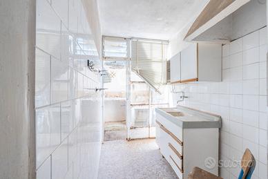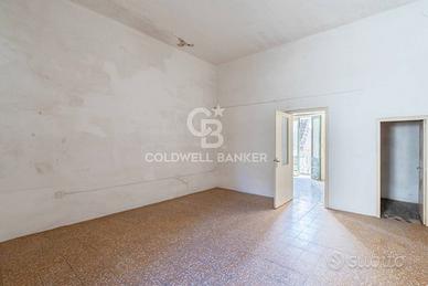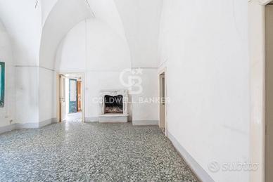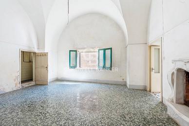 Disposta interamente al primo piano, con ampio ingresso che separa un luminoso salone di circa 30 mq, con bellissime volte a stella, balcone e camino, da una camera matrimoniale di circa 20 mq con ripostiglio dove poter realizzare eventualmente un bagno; zona pranzo con antica cucina economica e accesso al pozzo luce coperto e piccola area scoperta, seconda ampia camera da letto e un bagno. Ottime potenzialità.