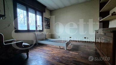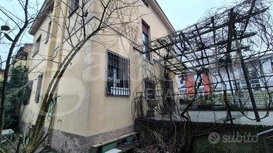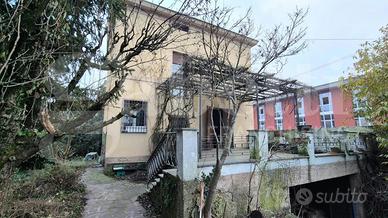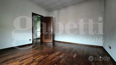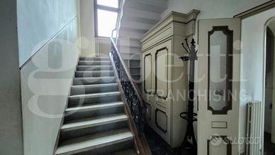 L'ingresso principale avviene attraverso una terrazza che introduce a uno spazioso doppio soggiorno, luminoso e accogliente, affiancato da un tinello separato e da un bagno di servizio, con pavimenti in marmo tipici della fine degli anni Ottanta, infissi in legno con doppio vetro che mantengono il carattere originale dell'abitazione. Una scenografica scalinata anni 30' conduce al piano superiore, dove si sviluppano tre spaziose camere matrimoniali interamente rifinite in parquet e un grande bagno con doppia finestra che dona luce naturale per tutta la giornata. Al livello inferiore si trova una cantina molto ampia, ideale come spazio di servizio o ambiente hobby, collegata direttamente al box per la massima praticità. La struttura della casa e gli impianti risalgono alla fine degli anni Ottanta, mentre il tetto in cemento è stato rifatto alla fine degli anni Novanta, garantendo solidità e affidabilità nel tempo. L'intera proprietà si presenta come una soluzione ricca di potenzialità, perfetta per chi desidera spazi generosi, indipendenza e un'abitazione dal fascino autentico.