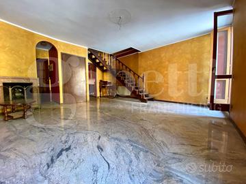 Al piano primo troviamo la zona giorno, con soggiorno completo di camino e balconata con affaccio fronte strada, la cucina abitabile separata con sfogo sul balcone interno ed il primo bagno finestrato; il reparto notte si trova al piano superiore ed è composto da una camera matrimoniale ed un'ampia singola, servite da un secondo bagno finestrato completo di vasca.