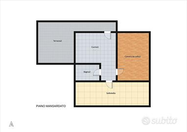 Piano mansardato ingresso su cucina/soggiorno, camera letto grande, bagno, sottotetto locale sgombero