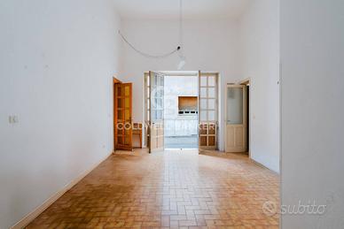 Limmobile si apre su un corridoio dingresso che conduce agli ambienti principali, attualmente distribuiti in più vani ma facilmente rimodulabili per creare una moderna zona living con cucina a vista e spazi funzionali.