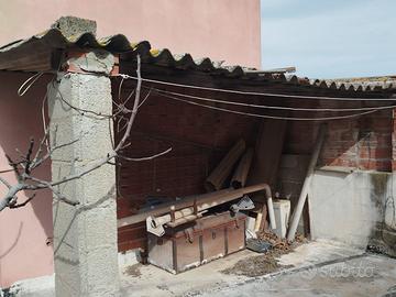 L'immobile si presenta da ristrutturare e si compone: al PT ingresso, salotto, soggiorno-pranzo, cucinino, bagno, due camere da letto e ripostiglio esterno, giardino e tettoia, tramite una scale esterna si accede al P1° che si compone da: ingresso sala, disimpegno due camere da letto e terrazza praticabile e bagno.