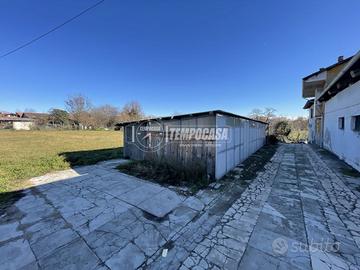 La proprietà dispone di un cortile privato che garantisce privacy e comodità. Sul lato ovest della casa si trova una travata adiacente, utile come area di servizio o per progetti di ampliamento, mentre di fronte all'abitazione è presente un ampio deposito attualmente adibito a ricovero attrezzi.