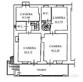Il piano superiore, raggiungibile sia tramite una scala a chiocciola interna sia attraverso una scala esterna coperta, ospita quattro camere da letto e due bagni. L'accesso esterno conduce inoltre a una veranda che si collega direttamente a due delle camere, creando uno spazio aggiuntivo ideale per momenti di relax o per godere della vista sul cortile.