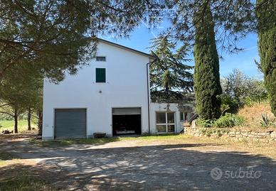 La proprietà comprende due garage per un totale di 200 mq circa, capannone di 225 mq circa e terreno di 5000 mq circa. Da ristrutturare.
