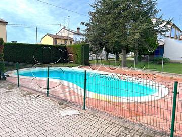 Il giardino circostante è impreziosito da una piscina interrata, comune ad entrambe le abitazioni.