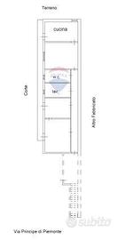 L'immobile, composto da due piani totalmente indipendenti è così diviso: al piano terra abbiamo 2 camere 1 bagno e la cucina che si affaccia sulla corte esterna di esclusiva pertinenza, dal corpo scala accediamo al primo piano che presenta 3 camere, 1 lavanderia, 1 bagno e la cucina.