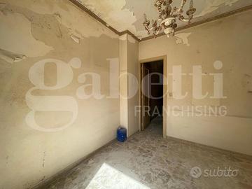 la casa ha ingresso direttamente su un grande salone distribuito in lunghezza, piccola cucina con accesso al pozzo luce e al wc, vano scale per l'accesso al primo livello. Al primo piano, è presente una grande camera da letto matrimoniale (destinabile anche a salone) con balcone esclusivo, una piccola cucina con finestra. All'ultimo piano, l'indipendente ha un disimpegno, il bagno con doccia e finestra, la camera da letto e il terrazzo a livello.