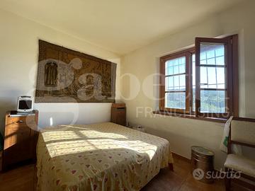 Al 1°P raggiungibile con scala esterna si trova il la mansarda con un locale con bagno e il sottotetto. La proprietà include una cantina interrata di circa 50 mq e un magazzino di 80 qm per ricovero delle attrezzature agricole. Il terreno si estende per 4,5 ettari di uliveto in produzione.