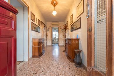 Attualmente, il piano principale si trova al primo piano, accessibile anche tramite montascale, ed è composto da un corridoio centrale che separa, da un lato, salotto e cucina, e dall'altro due camere matrimoniali e una terza stanza di dimensioni più contenute, utilizzabile come camera singola o studio. Il bagno al piano necessita di una completa ristrutturazione.