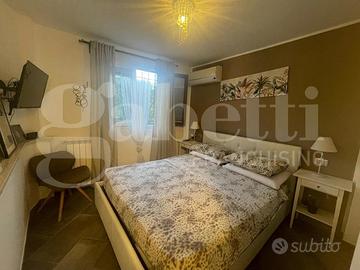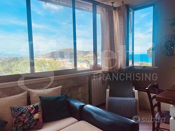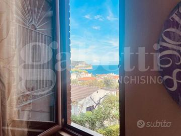 Appartamento con ingresso indipendente e con vista super panoramica. Con una superficie interna di 115 mq, sviluppata su due piani e con doppio ingresso, questa proprietà è composta da un ampio soggiorno con cucina a vista, camera da letto, cameretta con cabina armadio, ampio disimpegno con armadi,due bagni, vano lavanderia e ripostiglio. Completano la proprietà il giardino di 171 mq, il terrazzo sovrastante l'appartamento, dove trascorrere serate incantevoli, infine un'ampia area parcheggio privata di 250 mq. Questa proprietà rappresenta un'opportunità unica per chi desidera vivere in un ambiente di pregio e comfort, immerso nella tranquillità e nella bellezza della città di Gaeta.