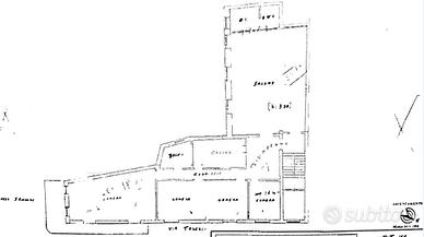Piano secondo: Piano a rustico di mq 260 a planimetria speculare a quella del piano primo incluso un lungo balcone che segue il perimetro esterno della proprietà con affaccio su Piazza San Giacomo