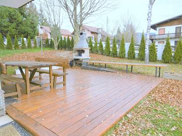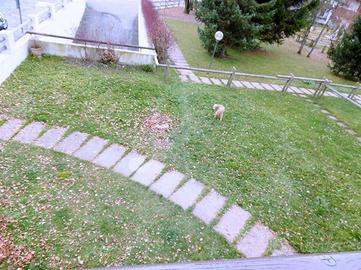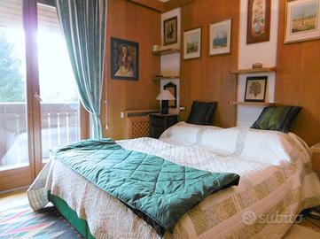 Porzione di casa in posizione tranquilla e panoramica completamente indipendente su tre livelli e con ampio giardino privato. Al piano terra salone doppio con camino, cucina e accesso diretto al giardino con terrazza in legno e zona barbeque. La zona notte si trova al primo piano ed è composta da 4 camere e 2 bagni. Al piano seminterrato grande taverna con soffitti molto alti, caminetto e un'ampia cucina con zona pranzo. Completano la proprietà due box auto. Termoautonomo.