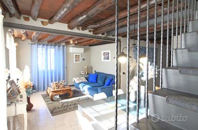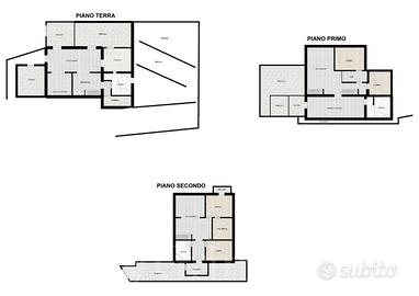 L'immobile di circa mq. 326 totali, si sviluppa su 3 livelli e si distingue per le rifiniture di pregio e la cura nei dettagli. L'ingresso principale è dal primo piano della casa, all'esterno troviamo un terrazzo coperto da tettoia entrando c'è la cucina, da qui passiamo alla zona giorno, 2 camere da letto, il bagno e le due scale una per salire al piano superiore e una con cui si si scende al piano terra. Scendendo al piano terra si arriva in un'accogliente zona giorno con cucina a vista, dispensa e bagno. Al secondo piano invece ci sono un'ampia zona giorno, 2 camere da letto di cui una con balcone, una stanza degli armadi comunicante con entrambe le camere, un ampio bagno. Questo piano dispone di un ingresso indipendente dall'esterno dove troviamo un giardino ed una veranda. All'esterno del piano terra invece è situata la cantina e vi sono due pergole, il portico, il giardino e la legnaia.