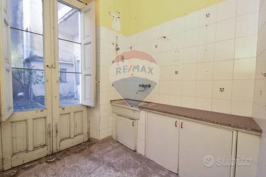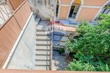 In via Carlo Alberto 87-89, nel centro storico di Giarre, edificio indipendente di 320 mq su due elevazioni fuori terra, con cortile al piano terra e terrazzo al piano soprastante.