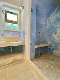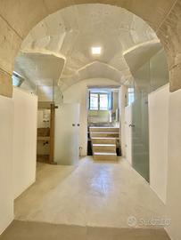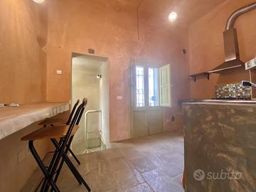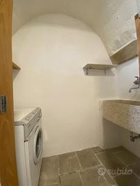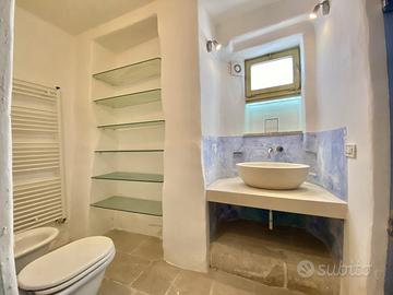La soluzione, dislocata su più livelli, racchiude in se tutta la bellezza emersa da un accurato restauro. Il piano rialzato dispone di ingresso, con una caratteristica loggia, un soggiorno e una cucina con un angolo cottura in muratura e camino. Dalla cucina, attraverso una scala in ferro battuto, si scende al piano inferiore. Qui troviamo due ampi vani, con le tipiche volte a stella, serviti da due bagni finestrati con doccia. Tutti gli ambienti sono dotati di impianto di riscaldamento e di climatizzazione.