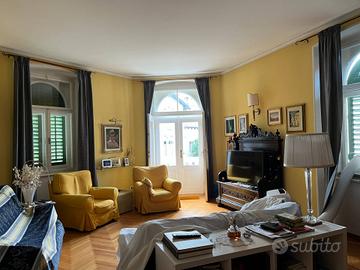 La proprietà è impreziosita da un elegante giardino piantumato, unautorimessa privata e da dettagli architettonici che raccontano la sua storia e il prestigio del tempo.