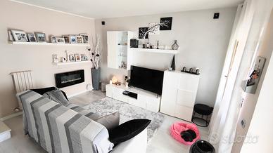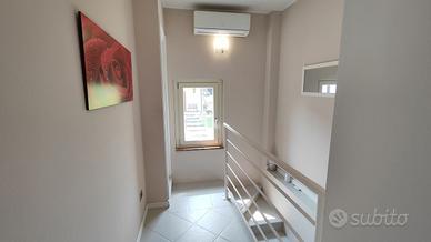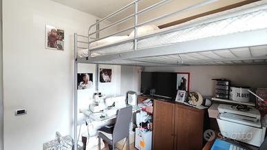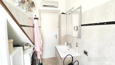 La soluzione è disposta su due livelli, al piano terreno accediamo direttamente nella zona soggiorno con cucina a vista e bagno finestrato con doccia. Al piano superiore troviamo la zona notte, composta da una camera matrimoniale e una singola.