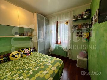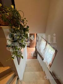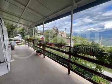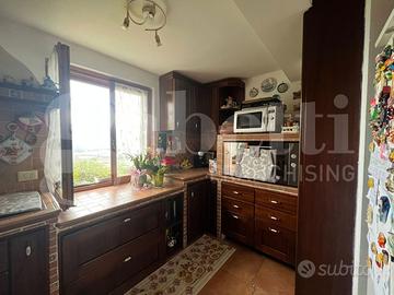 Al piano terra, un accogliente soggiorno si apre su una cucina a vista e un tinello, offrendo uno spazio conviviale e luminoso. Un bagno completa il piano terra, garantendo praticità e funzionalità. Salendo al piano superiore, tre camere da letto accoglienti si affacciano su un terrazzo panoramico che regala viste mozzafiato sulla natura circostante. Un ulteriore bagno completa la zona notte.