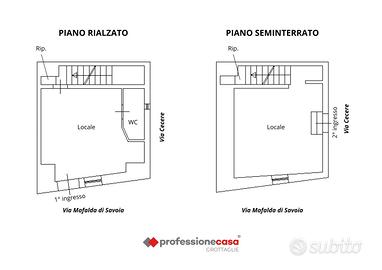L'immobile dispone di due ingressi indipendenti, uno per ciascun livello, collegati internamente da una comoda scala. Al piano rialzato si trovano un locale con volta a stella, un bagno e un ripostiglio ricavato nel sottoscala, invece al piano seminterrato un secondo ambiente dotato di volta a botte e un ulteriore ripostiglio, anch'esso sfruttato nel sottoscala.