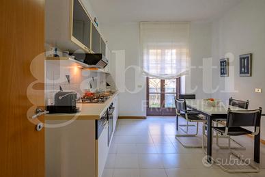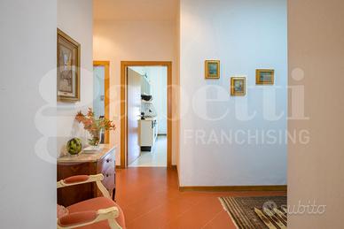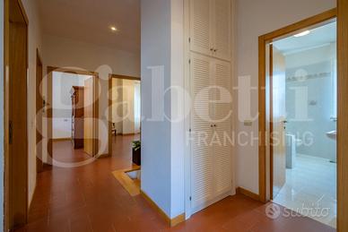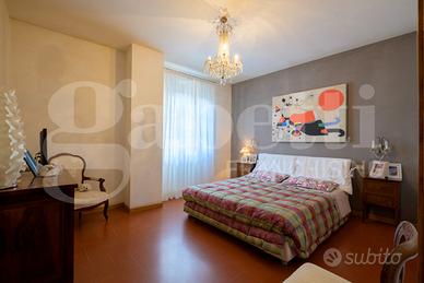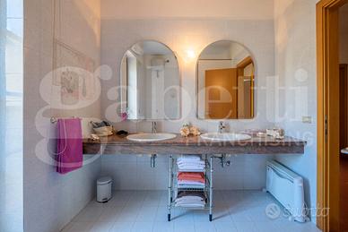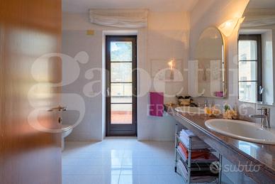 L'ingresso conduce a un elegante e luminoso salone con camino, affiancato da una cucina con tinello, una camera e un bagno. Tutti gli ambienti del piano terra sono dotati di porte finestre che garantiscono un accesso diretto al giardino, creando una piacevole continuità tra interno ed esterno. Completano il piano terra uno studio, un bagno, una cantina e un'autorimessa, ambienti dai quali è possibile realizzare un bilocale con ingresso indipendente. Il piano primo ospita la zona notte con quattro ampie camere da letto, una comoda stanza guardaroba, due bagni, un ripostiglio.