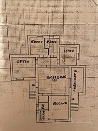 La Villetta di 136 mq all'interno è composta da un'ampia zona giorno, con doppio salone (diviso da porta a vetri apribile) con grande camino funzionante, zona cucina, piccola, ma completamente attrezzata (forno-frigo-lavastoviglie) e zona lavanderia. La zona notte prevede due camere da letto, uno studio (trasformabile in terza camera) e un bagno finestrato con doppi lavandini. L'interno è completato da una veranda coperta da cui si accede sia dall'esterno (con porta) o dal salone. La pavimentazione della casa, in ottime condizioni, è di marmo e parquet. Riscaldamento autonomo tramite caldaia a metano.