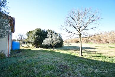 La proprietà è circondata da un ampio terreno, di circa 7000 mq, di conformazione regolare e pianeggiante, consentendo una semplice cura dello stesso.