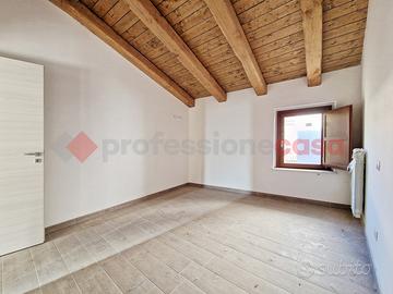 Al piano secondo si sviluppa, invece, la zona notte composta da due camere da letto con tetto in legno a vista, un altro disimpegno, una comoda nicchia da adibire a ripostiglio e, infine, un bagno finestrato con doccia.