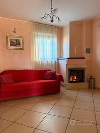 -piano terra: ingresso, cucina abitabile, ripostiglio, soggiorno con termocamino (collegato all'impianto di riscaldamento e alla produzione di acqua calda sanitaria)