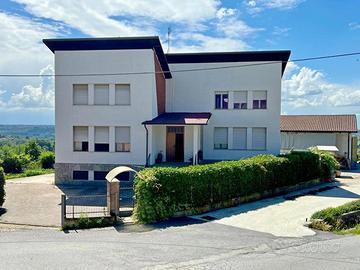 LA MORRA: Frazione Rivalta. In posizione soleggiata e panoramica, proponiamo casa completamente indipendente disposta su due livelli. Questa casa, conosciuta dagli abitanti del posto come "le vecchie scuole", ad oggi è composta da tre unità abitative. L'accesso al cortile privato avviene tramite il cancello automatico prospicente la via pubblica ed è costituito principalmente in battuto di cemento oltre ad una porzione di verde. Si accede al piano rialzato attraverso il porticato dove troviamo un ampio ingresso, il soggiorno con l'angolo cottura sul lato, due camere da letto tra loro disimpegnate e un bagno dalle generose dimensioni (CE G -IPE 508,07). Il primo piano ad oggi è diviso in due unità immobiliari: la prima di tre locali con bagno e balcone che gode di una stupenda vista panoramica sulle montagne (CE G -IPE 548,87); la seconda di due locali e bagno (CE G -IPE 573,43). Queste due unità si possono unire creando così un unico appartamento. Completa la proprietà il piano seminterrato adibito a taverna, locali di sgombero, cantina e centrale termica. Da vedere! € 240.000 Rif. 24045