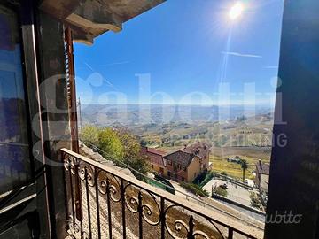 L'immobile, disposto su tre livelli, presenta ambienti ampi e luminosi e si compone di ingresso, disimpegno, tinello, cucina, soggiorno con balcone panoramico e due bagni, oltre a quattro camere e un altro balcone che offre scorci unici sulle colline patrimonio dell'UNESCO.