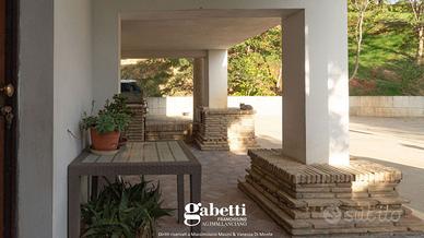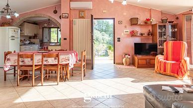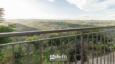 Una suggestiva stradina privata conduce all'abitazione, costruita nel 2013 e disposta su due livelli. Al piano terra troviamo diversi locali, attualmente adibiti a cantine, ma facilmente trasformabili in una meravigliosa taverna, spazi ad uso commerciale, residenziale o altro. Al primo piano, raggiungibile tramite una bellissima scala esterna, si trova l'abitazione principale, composta da un'ampia zona living, cucina a vista, comodo ripostiglio/lavanderia, due camere matrimoniali, uno studio e un bagno. Il tutto è circondato da meravigliosi balconi da cui si può godere di un'incredibile vista panoramica.