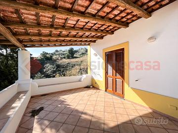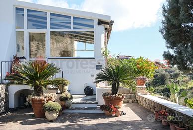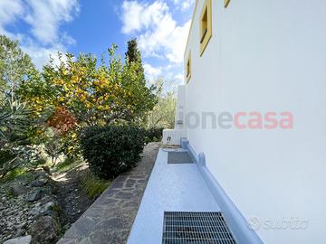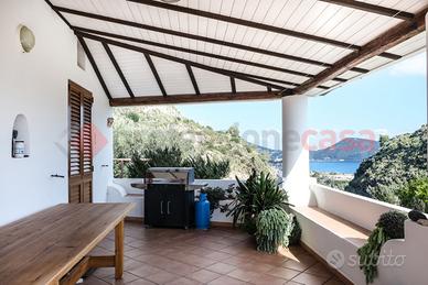 Isole Eolie - Lipari. In zona esclusiva, panoramica, proponiamo in vendita villa di circa 125 mq con circa 60 mq di dependance e giardino di circa 580 mq. L' immobile presenta un ingresso su veranda chiusa a vetri che accompagna ad un ampio soggiorno, cucina a vista, un bagno e una camera da letto con affaccio su terrazzo panoramico coperto. La dependance è composta da ingresso con angolo cottura, un bagno, una camera da letto con affaccio su terrazza coperta; piano interrato caratterizzato da un unico grande ambiente con ripostiglio, deposito. Vi è inoltre un ampio terrazzo scoperto panoramico sovrastante l' immobile.