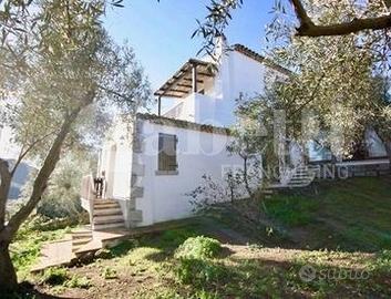 All'esterno, la casa dispone di posto auto con tettoia, un ampio giardino con 16 ulivi, una riserva idrica e un serbatoio del gas interrato.
