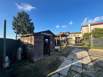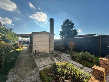 Completano la proprietà: garage, portico, ricovero attrezzi con bagno e lavanderia ed ampio giardino privato, perfetto per momenti di relax, giochi all'aperto o convivialità.